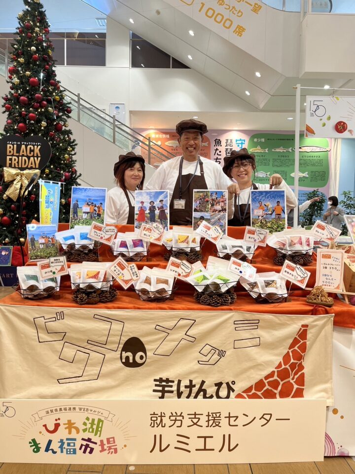 また、販売を通して利用者さんが大きく成長しています。最初は緊張して言葉も出なかった子が、今では「ビワコノメグミ芋けんぴです!どうぞ食べてみてください!」と自分から声をかけられるようになりました。お客様と笑顔でやりとりする姿を見ると、本当にうれしいです。