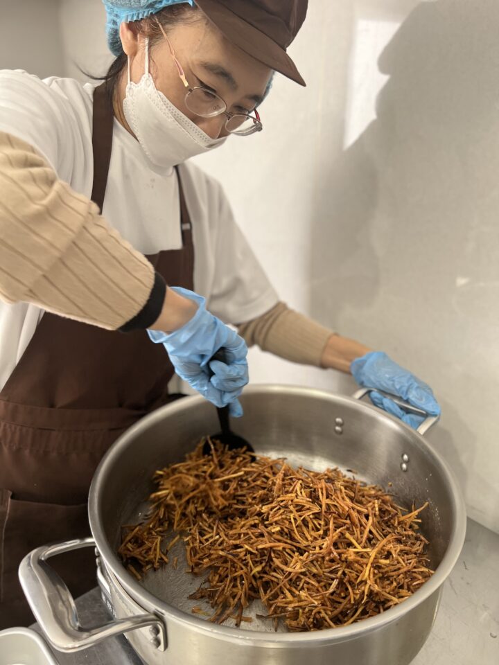 就労支援センタールミエルの副所長、諸頭珠美さんにお話を伺うと、この芋けんぴには「障がいのある方が安心して働ける場所をつくりたい」という思いと、「地元の素材を活かしたおいしいおやつを届けたい」という願いが込められていることがわかります。地元の農家さんや養護学校の生徒さん、地域の人たちと一緒に作る芋けんぴは、手作りならではの温かさがあり、食べる人の心までほっこりさせてくれます。
